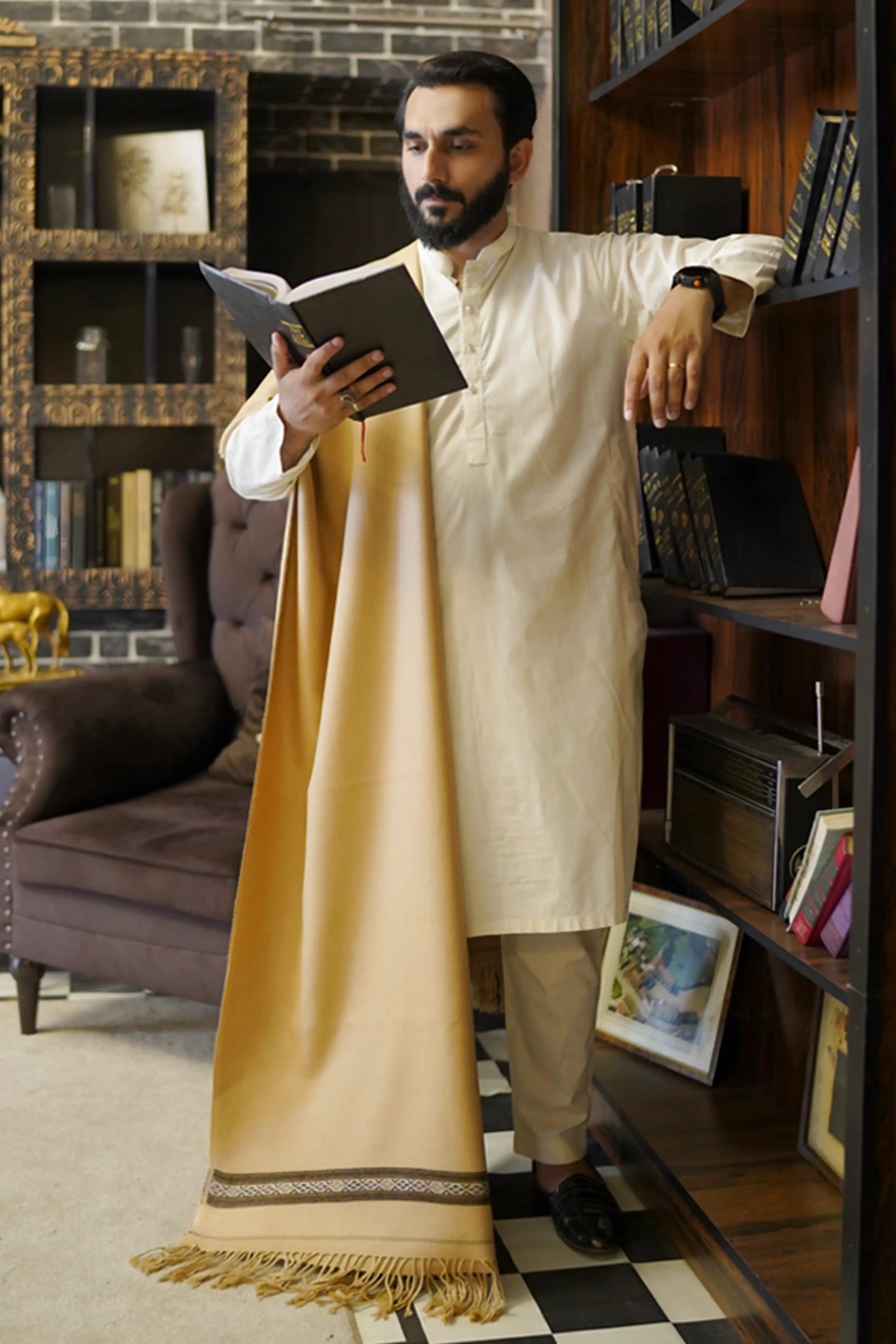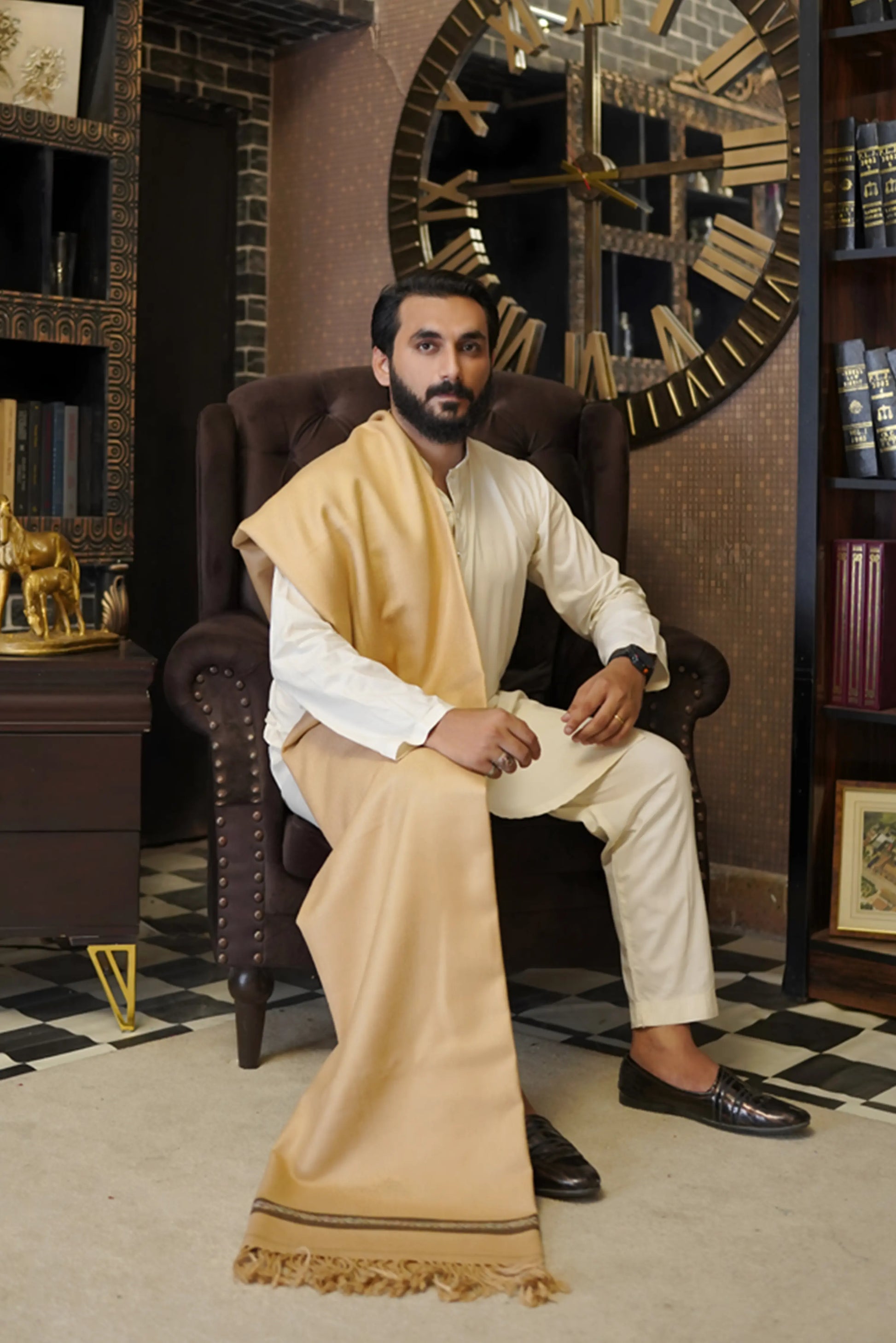 Add a touch of classic elegance to your winter wardrobe with this Multicolor Bail Men Shawl. Crafted with care, this thick multicolor bail shawl is designed to keep you warm while adding style to your outfit. Its soft and smooth texture makes it comfortable to wear all day, whether you’re heading out for a casual gathering or a cultural event. The colorful bail pattern blends beautifully with both traditional and modern looks. You can easily pair it with jeans for a classy yet relaxed style or drape it over a shalwar kameez for a complete conventional touch. The shawl’s fine stitching and durable material make it a perfect pick for long lasting use. With its versatile design, this shawl suits every age and style preference, bringing comfort, tradition and elegance together.
